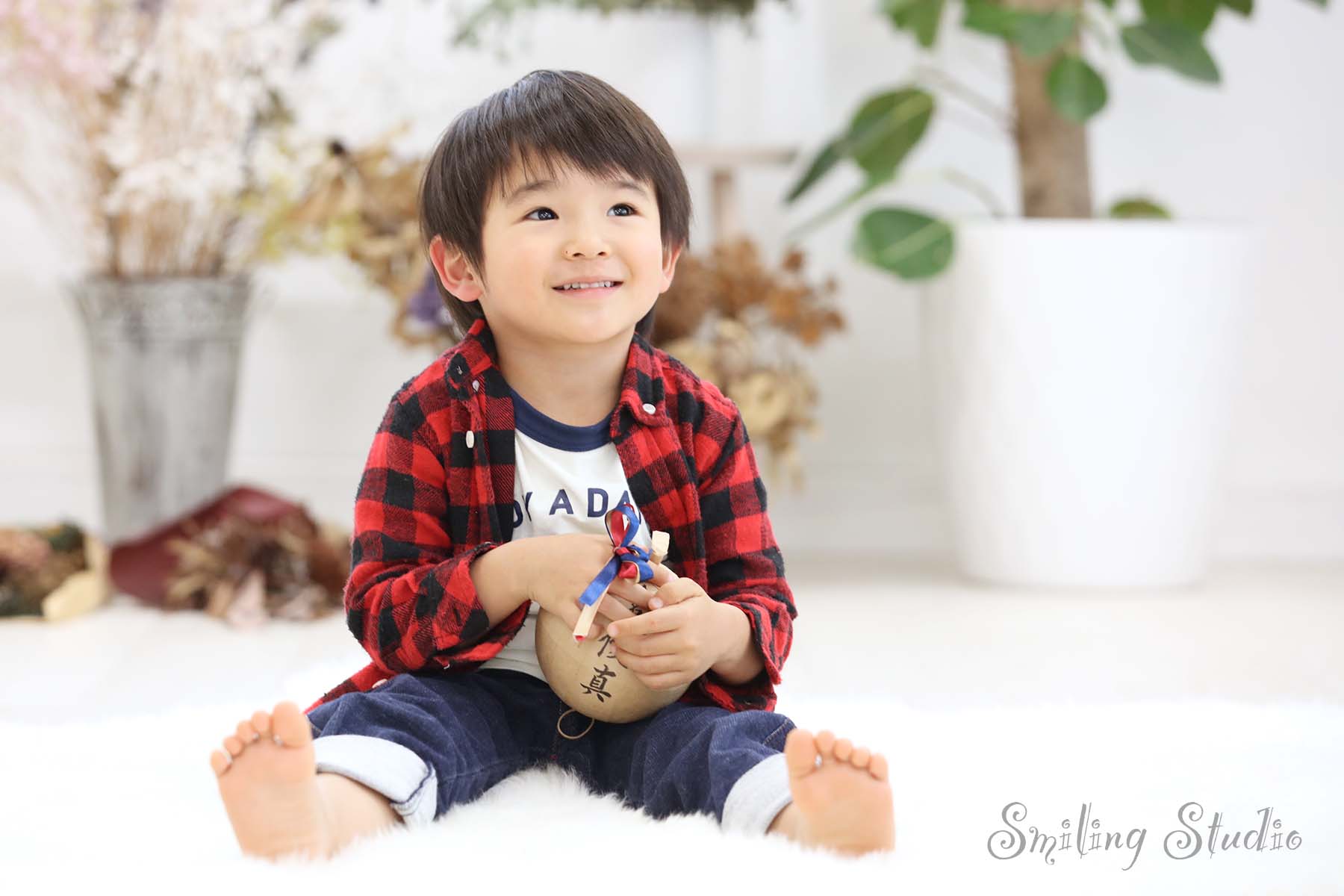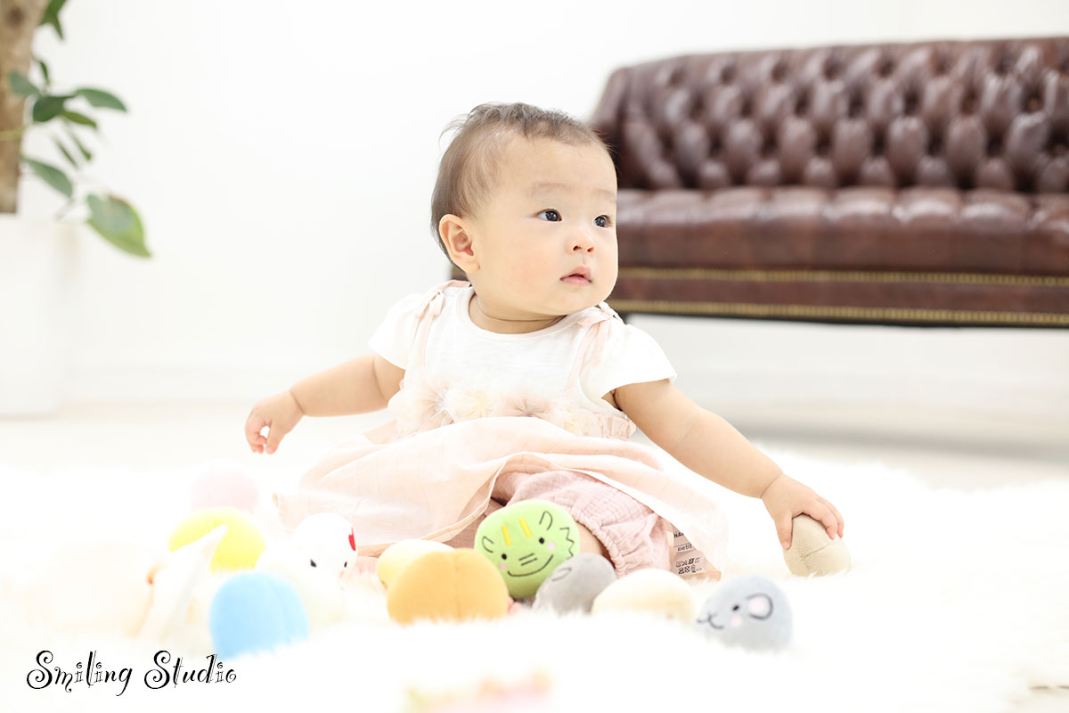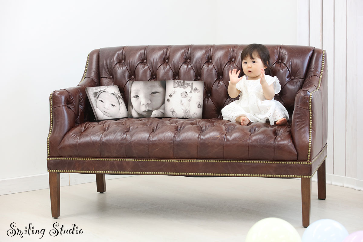 お子様の誕生日を祝う撮影です。